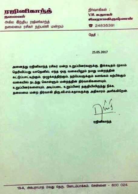 நற்பெயருக்கு களங்கம் விளைவிக்கும் ரசிகர்களை நீக்க ரஜினிகாந்த் உத்தரவு!