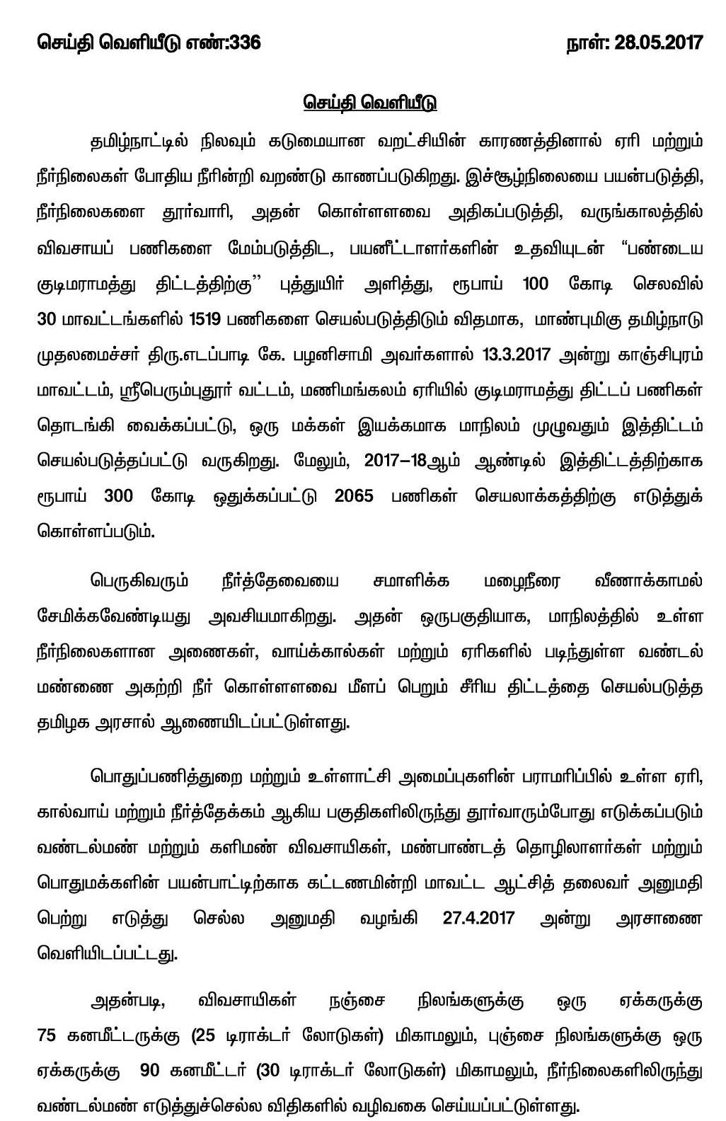 Home|News|மேட்டூர் அணையில் தூர்வாரும் பணியினை தமிழ்நாடு முதலமைச்சர் கே. பழனிசாமி தொடங்கி வைத்தார். -கே.பி.சுகுமார்.