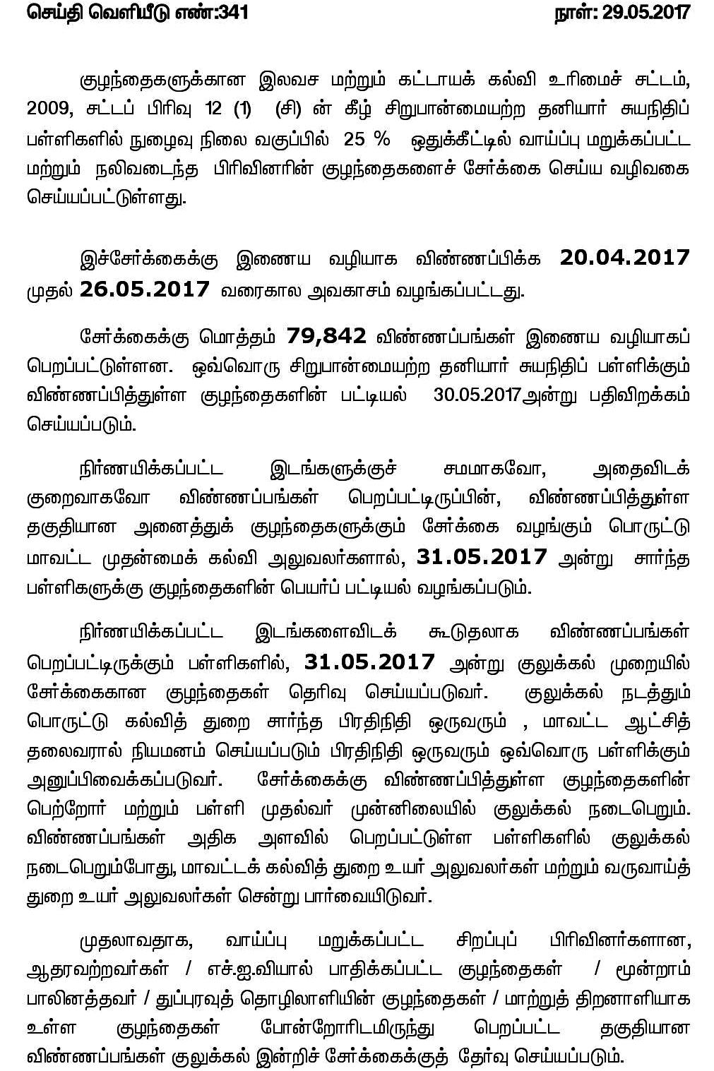 Home|News|இலவச மற்றும் கட்டாயக் கல்வி உரிமைச் சட்டப்படி சேர்க்கைக்குத் தேர்வு செய்யப்பட்ட குழந்தைகளுக்கு 05.06.2017-க்குள் பள்ளியில் சேர்க்கை வழங்கப்படும். -ஆர்.மார்ஷல்.