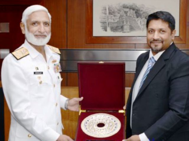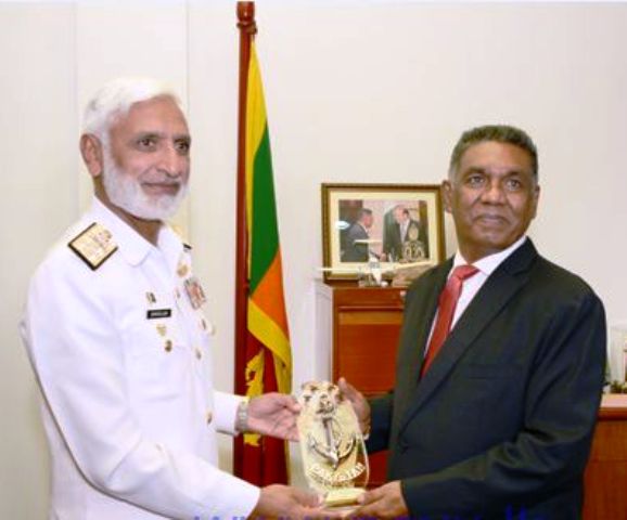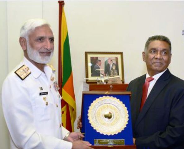 இலங்கைக்கு மூன்று நாள் உத்தியோகபூர்வ விஜயமொன்றை மேற்கொண்டுள்ள பாகிஸ்தானிய கடற்படை தளபதி அட்மிரல் மொஹமட் சகாவுல்லாஹ், இலங்கை பாதுகாப்பு இராஜாங்க அமைச்சர் ருவன் விஜேவர்தன மற்றும் பாதுகாப்பு செயலாளர் பொறியியலாளர். கருணாசேன ஹெட்டியாராச்சி ஆகியோர்களை இன்று (13.06.2017) பாதுகாப்பு அமைச்சகத்தில் சந்தித்து பேசியுள்ளார்.