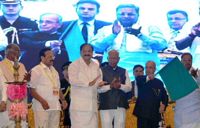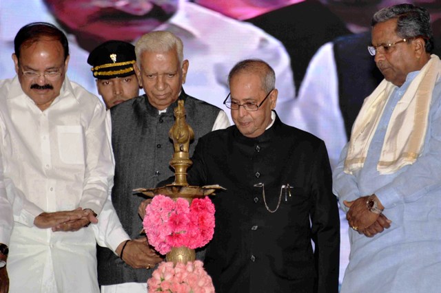 கர்நாடாகாவில் குடியரசு தலைவர் பிரணாப் முகர்ஜி! கேரளாவில் பிரதமர் நரேந்திர மோதி!-இருவரையும் சமாளித்த மத்திய அமைச்சர் எம்.வெங்கையா நாயுடு.