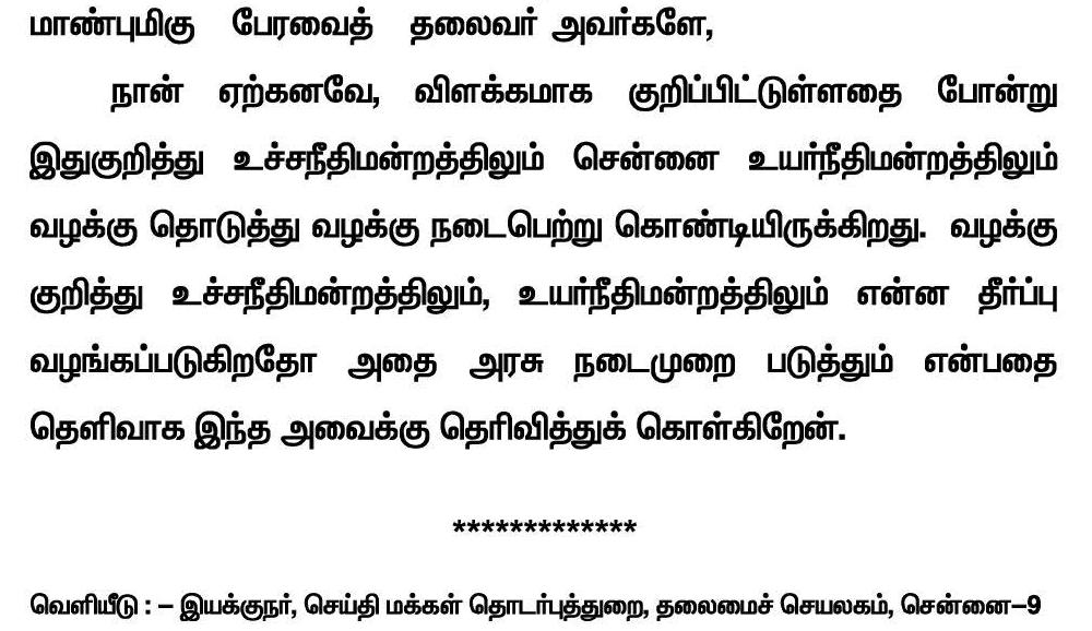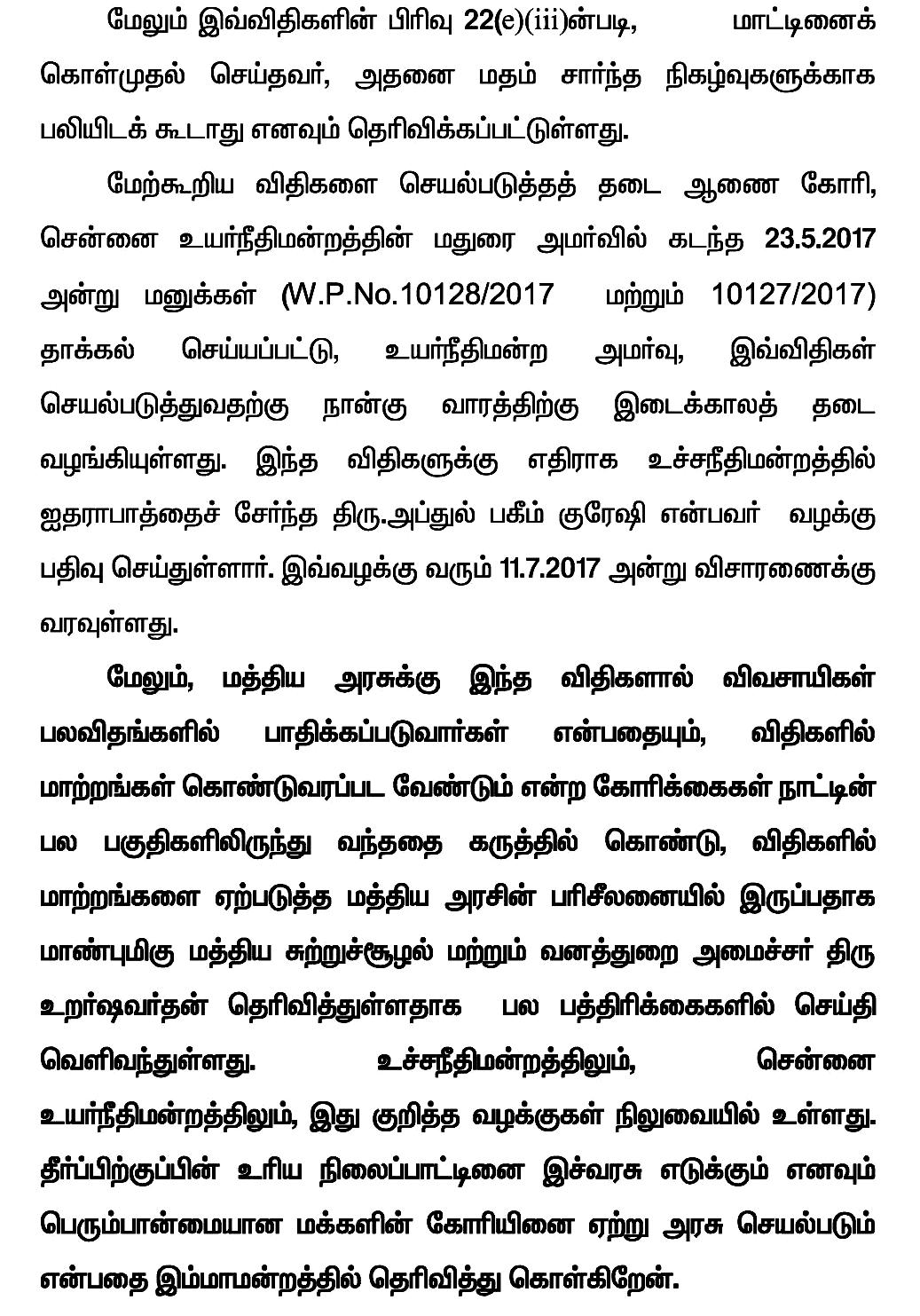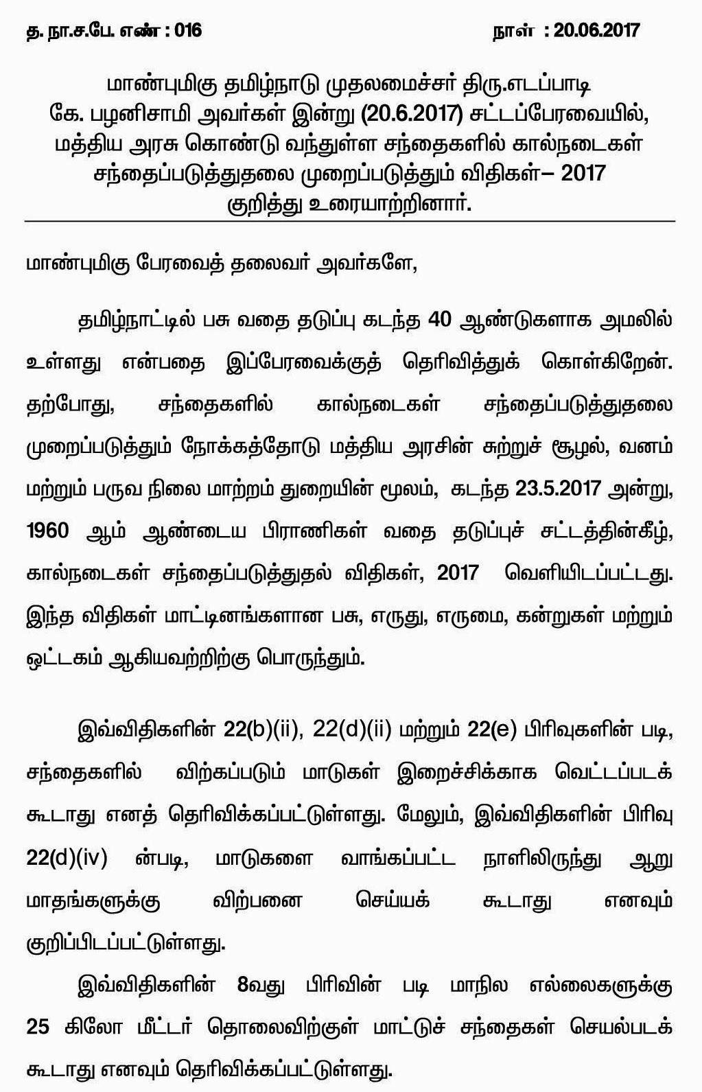 சந்தைகளில் கால்நடைகள் விற்கும் விவகாரம்; உச்சநீதிமன்றத்திலும், உயர்நீதிமன்றத்திலும் என்ன தீர்ப்பு வழங்கப்படுகிறதோ அதை அரசு நடைமுறைபடுத்தும்: சட்டப்பேரவையில் தமிழக முதலமைச்சர் கே.பழனிசாமி தகவல்.