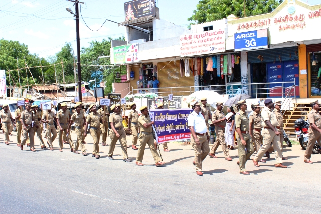இப்பேரணியில் ஊர் காவல் படை கமாண்டோ சிராஜூதீன், ஆயுதப்படை டி.எஸ்.பி. பொன்னுமலை ஆகியோர் கலந்து கொண்டனர்.