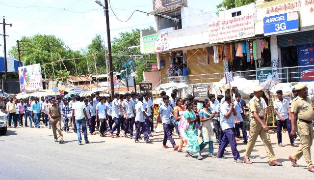 இப்பேரணியில் கலந்து கொள்வதற்கு மாணவர்களுக்கு முன்கூட்டியே காவல்துறையினர் தகவல் கொடுக்காததால், மாணவர்கள் வரவில்லை. அதனால் காலை 9.30 மணிக்கு தொடங்குவதாக இருந்த பேரணி தொடங்க முடியவில்லை. 9.30 மணிக்கு மேல் தான் முக்குளத்தோர் மேல்நிலைப்பள்ளி, அரசு ஐடிஐ மற்றும் துவாக்குடி அரசு கலை கல்லூரிக்கு போலீசார் விரைந்து சென்று, பள்ளி தலைமை ஆசிரியர் மற்றும் கல்லூரி முதல்வர்களிடம் ஒரு வழியாக பேசி 10.30 மணிக்கு மேல் காவல்துறை வாகனங்களிலேயே பள்ளி மற்றும் கல்லூரி மாணவர்களை அழைத்து வந்து பேரணியை நடத்தினார்கள்.