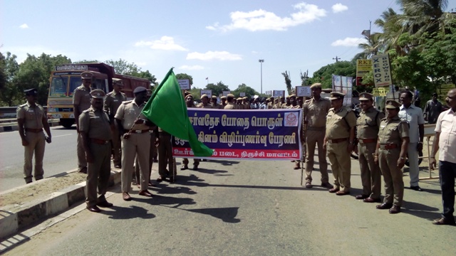 பேரணியை திருவெறும்பூர் ஏ.எஸ்.பி. கலைச்செல்வன் தலைமை வகித்து தொடங்கி வைத்தார். இந்த பேரணியானது பெல் கணேசபுரத்திலிருந்து தொடங்கி, திருச்சி- தஞ்சை தேசிய நெடுஞ்சாலை வழியாக திருவெறும்பூர் கடை வீதி வரை வந்தடைந்தது.