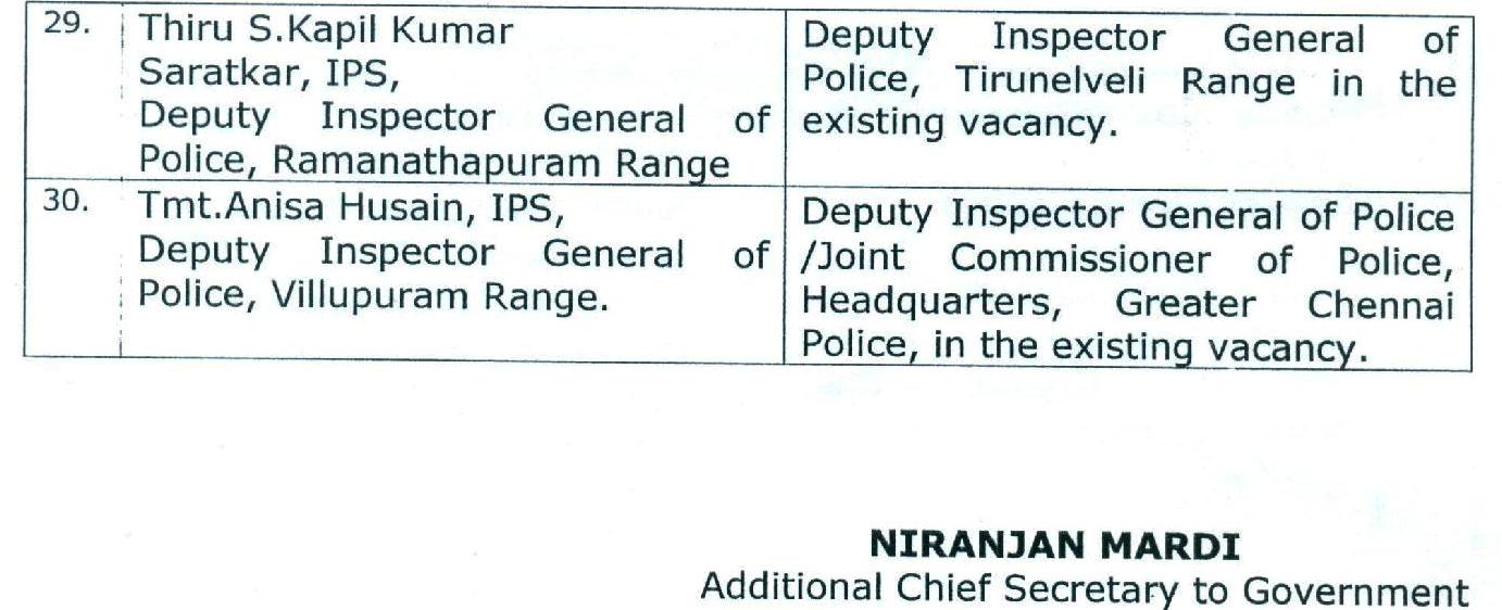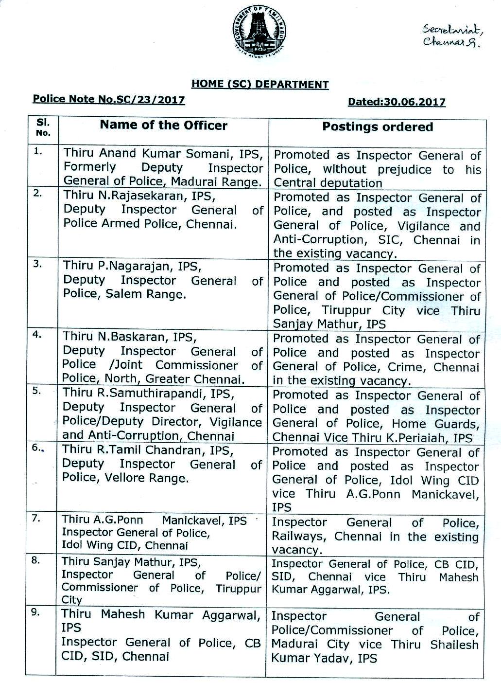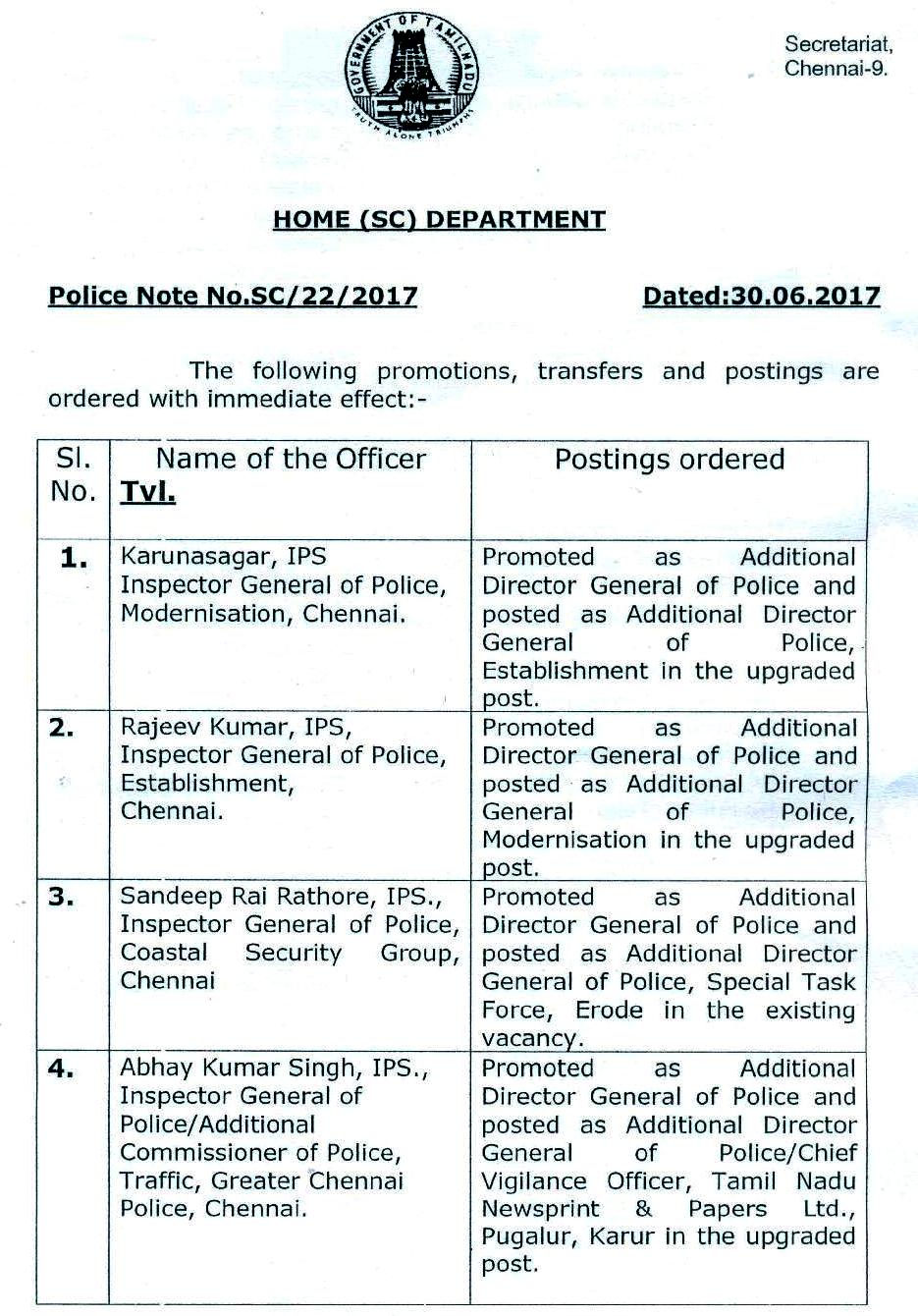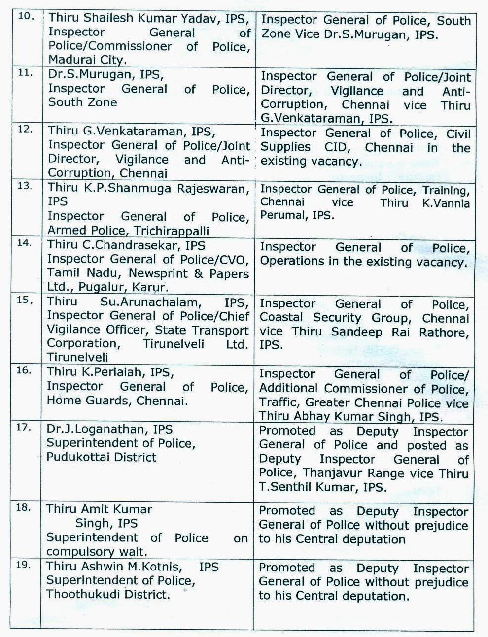 தமிழகத்தில் ஐ.பி.எஸ். அதிகாரிகள் அதிரடி மாற்றம்!- உத்தரவின் உண்மை நகல்.