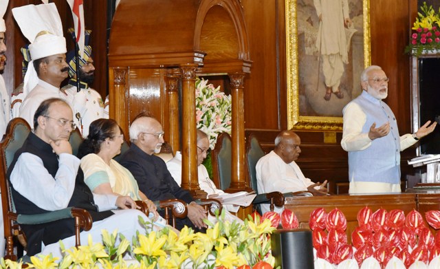 அதன்பிறகு பிரதமர் நரேந்திர மோதி உரையாற்றினார். அப்போது சரக்கு, சேவை வரி பற்றியும், அதை அமல்படுத்துவதால் ஏற்படும் நன்மைகள் குறித்தும் அவர் பேசினார்.