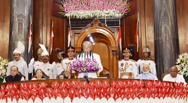 இவ்விழாவில் கலந்துகொள்வதற்காக குடியரசு தலைவர் பிரணாப் முகர்ஜி இரவு 10.55 மணிக்கு பாராளுமன்றத்துக்கு வந்தார். அவரை வரவேற்று மைய மண்டபத்துக்குள் அழைத்துச் சென்றனர்.