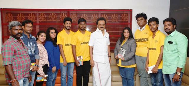3டி பிரிண்டிங் தொழில் நுட்பத்தில், 64 கிராம் எடை கொண்ட உலகின் மிகச்சிறிய ‘கலாம்சாட்’ என்ற செயற்கைக்கோளை உருவாக்கி, அதனை நாசா அமைப்பின் மூலம் விண்ணில் செலுத்திய “ஸ்பேஸ் கிட்ஸ்” அமைப்பை சேர்ந்த மாணவர்கள் இன்று காலை தமிழக எதிர்கட்சித் தலைவர் மு.க.ஸ்டாலினை நேரில் சந்தித்தனர்.