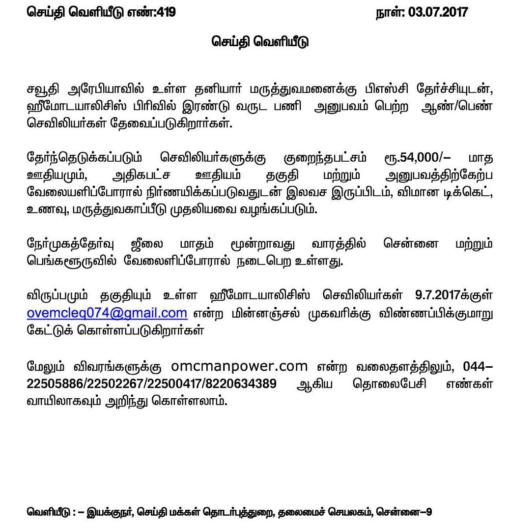 சவூதி அரேபியாவில் உள்ள தனியார் மருத்துவமனைக்கு ஆண்/பெண் செவிலியர்கள் தேவை!