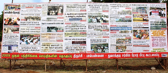 திருச்சி – தஞ்சை தேசிய நெடுஞ்சாலையில் ஏற்படும் விபத்துகளை தவிர்க்கும் பொருட்டு, பழைய பால் பண்ணை முதல் துவாக்குடி வரை சாலையின் இரு புறமும் அணுகு சாலை (சர்வீஸ் ரோடு) அமைக்க வலியுறுத்தி திட்டமிட்டப்படி நலச்சங்கங்கள் சார்பில் இன்று திருவெறும்பூர், பெல் கணேசபுரத்தில் உண்ணாவிரதப் போராட்டம் நடைப்பெற்றது. இதில் ஏராளமானோர் பங்கேற்றனர்.