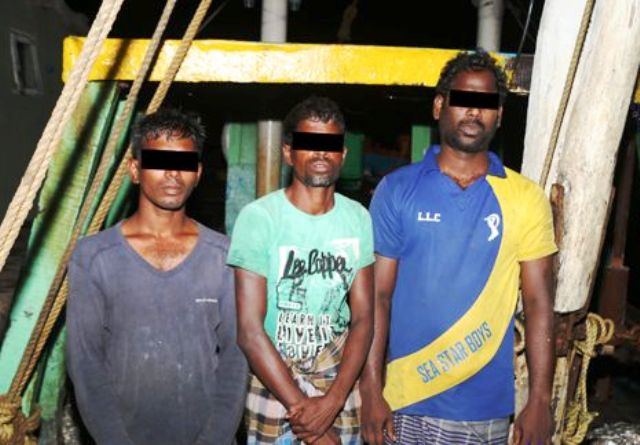 ஸ்ரீலங்கா கடல் எல்லைக்குள் சட்டவிரோத மீன்பிடியில் ஈடுபட்டதாக கூறி 3 இந்திய மீனவர்களை இலங்கை கடற்படையினர் 08.07.2017 அன்று கைது செய்தனர். அதன் பிறகு அவர்களை காங்கேசன் துறைமுகத்திற்கு கொண்டு வந்தனர். கைது செய்யப்பட்ட இந்திய மீனவர்கள் மற்றும் ஏனைய மீன்பிடி உபகரணங்களை சட்ட நடவடிக்கைக்காக யாழ்ப்பாண பணிப்பாளரிடம் ஒப்படைத்துள்ளனர்.