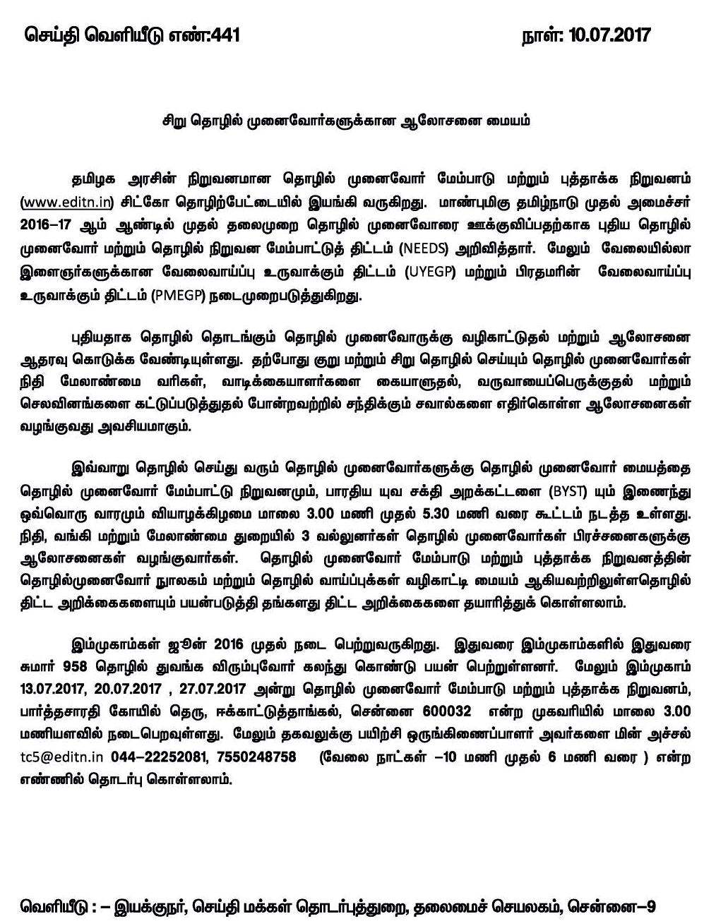 Home|News|சிறுதொழில் முனைவோர்களுக்கான ஆலோசனை ஜூலை 13, 20, 27 தேதிகளில் சென்னையில் நடைபெற இருக்கிறது. -கே.பி.சுகுமார்.