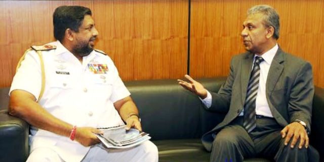 இலங்கையில் புதிதாக நியமிக்கப்பட்டுள்ள பாதுகாப்புச் செயலாளர் கபிலா வைடயாரட்னவை, இலங்கை கடற்படை தளபதி ரவீந்திர விஜேகுணரத்ன இன்று (ஜூலை 11) நேரில் சந்தித்து பேசினார்.