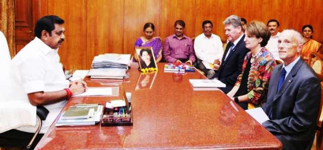 தமிழ்நாடு முதலமைச்சர் கே.பழனிசாமி இன்று (14.7.2017) தலைமைச் செயலகத்தில், புதுடெல்லியிலுள்ள அமெரிக்க தூதரகத்தின் தலைவர் (பொறுப்பு) மேரிகேய் எல்.கால்சன், இந்தியாவிற்கான அமெரிக்க நாட்டு தூதர் (முறைப்பணி) டேவிட் பாலார்டு, சென்னையிலுள்ள அமெரிக்க தூதரகத்தின் அரசியல் மற்றும் பொருளாதார அலுவலர் கென்னெத் மெக்பெரைட் ஆகியோர் சந்தித்தார்கள்.