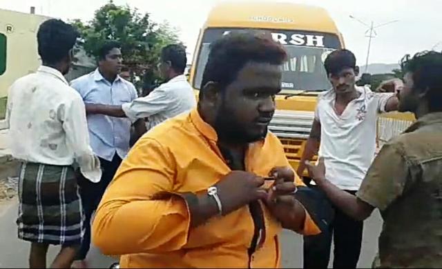 வேலூர் மாவட்டம், வாணியம்பாடியில் தனியார் பள்ளி மாணவர்களை அழைத்து சென்ற பள்ளி வாகனத்தை குடிபோதையில் வழிமறித்து, பேருந்தில் இருந்த உடற்கல்வி ஆசிரியர் ராமு மற்றும் பேருந்து ஓட்டுநரை வாணியம்பாடி அ.இ.அ.தி.மு.க. நகரச்செயலாளர் மகன்கள் தமிழ் மற்றும் ஜெகன் ஆகியோர் சரமாரியாக தாக்கியுள்ளனர். இதனால் வாணியம்பாடியில் பெரும் பரபரப்பு ஏற்பட்டுள்ளது.