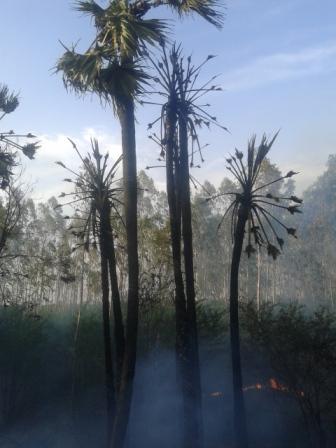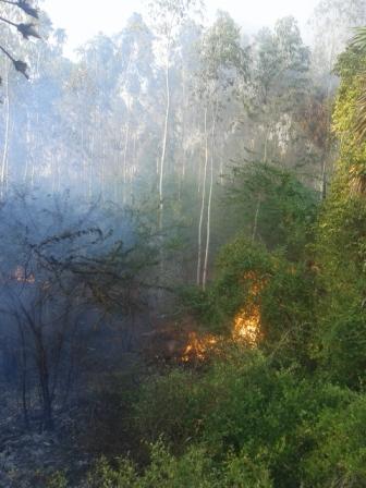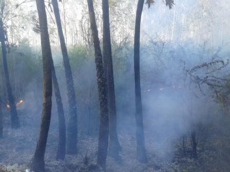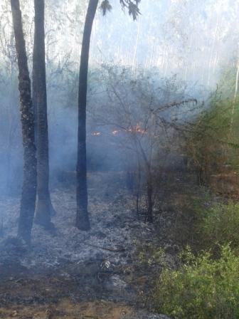 தீயணைப்பு நிலையத்தில் தீயணைப்பு வாகனம் வேறு இடத்திற்கு சென்றதால், தீயணைப்பு வாகனம் இரண்டு மணி நேரம் தாமதமாக வந்தது. இதற்குள் வனப்பகுதியில் காற்றின் வேகம் மற்றும் வெயிலின் தாக்கம்  காரணமாக தீ வேகமாக பரவியதில் அப்பகுதியில் இருந்த தைல மரம், பனை மரம் இதர மரங்கள் அனைத்தும் தீயில் எரிந்து கருகியது. தாமதமாக வந்த தீயணைப்பு வீரர்கள் தீயை அணைத்து வருகின்றனர்.