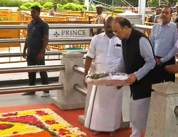 மறைந்த தமிழக முதலமைச்சர் ஜெ.ஜெயலலிதாவின் நினைவிடத்தில், மத்திய நிதியமைச்சர் அருண்ஜெட்லி மலர் வளையம் வைத்து இன்று அஞ்சலி செலுத்தினார்.