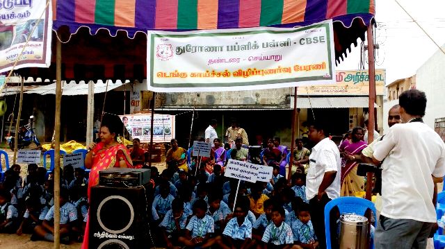 திருவண்ணாமலை மாவட்டம், செய்யாரில் டெங்கு காய்ச்சல் விழிப்புணர்வு பேரணி துரோணா பப்ளிக் பள்ளி சார்பாக செய்யாரில் உள்ள ஆரணி கூட்ரோடு பேருந்து நிறுத்தும் அருகே இன்று (05.08.2017) காலை 10.30 மணி அளவில் நடைபெற்றது.