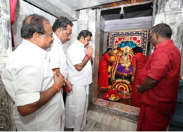 tncmeps in melmaruvathurவிழுப்புரம் அருகே கண்டமானடியில் நடைபெற்ற எம்.ஜி.ஆர் நூற்றாண்டு விழாவில் கலந்து கொள்வதற்காக செல்லும் வழியில் மேல்மருவத்தூர் ஆதிபராசக்தி திருக்கோயிலில், தமிழக முதலமைச்சர் கே.பழனிச்சாமி சாமி தரிசனம் செய்தார்.
