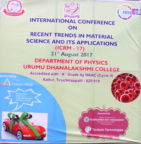 திருச்சி, காட்டூர் பாப்பாக்குறிச்சியில் உள்ள  உருமு தனலெட்சுமி கல்லூரி இயற்பியல் துறை சார்பில், “தற்போதைய அறிவியல் பொருட்களும், அதன் பயன்பாடும்” என்ற தலைப்பில் ஒரு நாள் பன்னாட்டு கருத்தரங்கம் இன்று நடைப்பெற்றது.