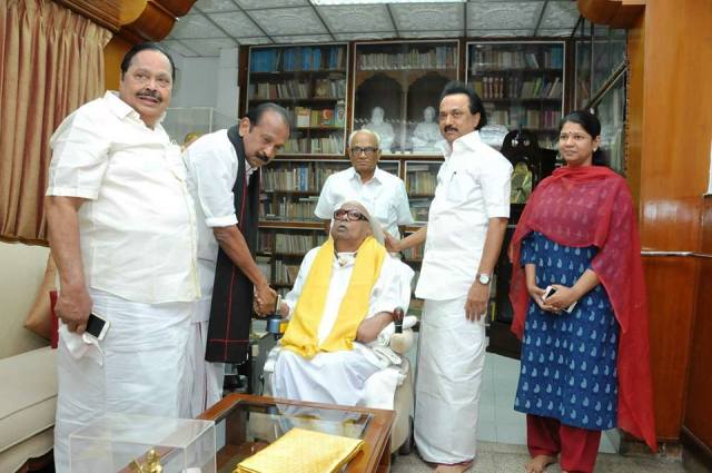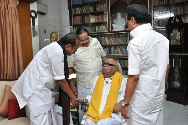 Home|News|திமுக தலைவர் மு.கருணாநிதியை, மதிமுக பொதுச்செயலாளர் வைகோ நேரில் சந்தித்தார். இன்று மாலை (22.08.2017) சென்னை கோபாலபுரம் இல்லத்தில் திமுக தலைவர் மு.கருணாநிதியை, மதிமுக பொதுச்செயலாளர் வைகோ நேரில் சந்தித்து உடல் நலம் விசாரித்தார். பிரிந்தவர்கள் இணைந்தால் பேசவும் முடியுமோ? -எஸ்.திவ்யா.
