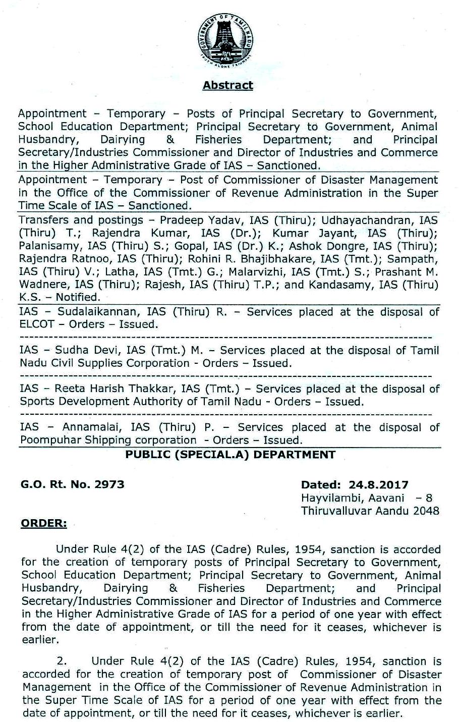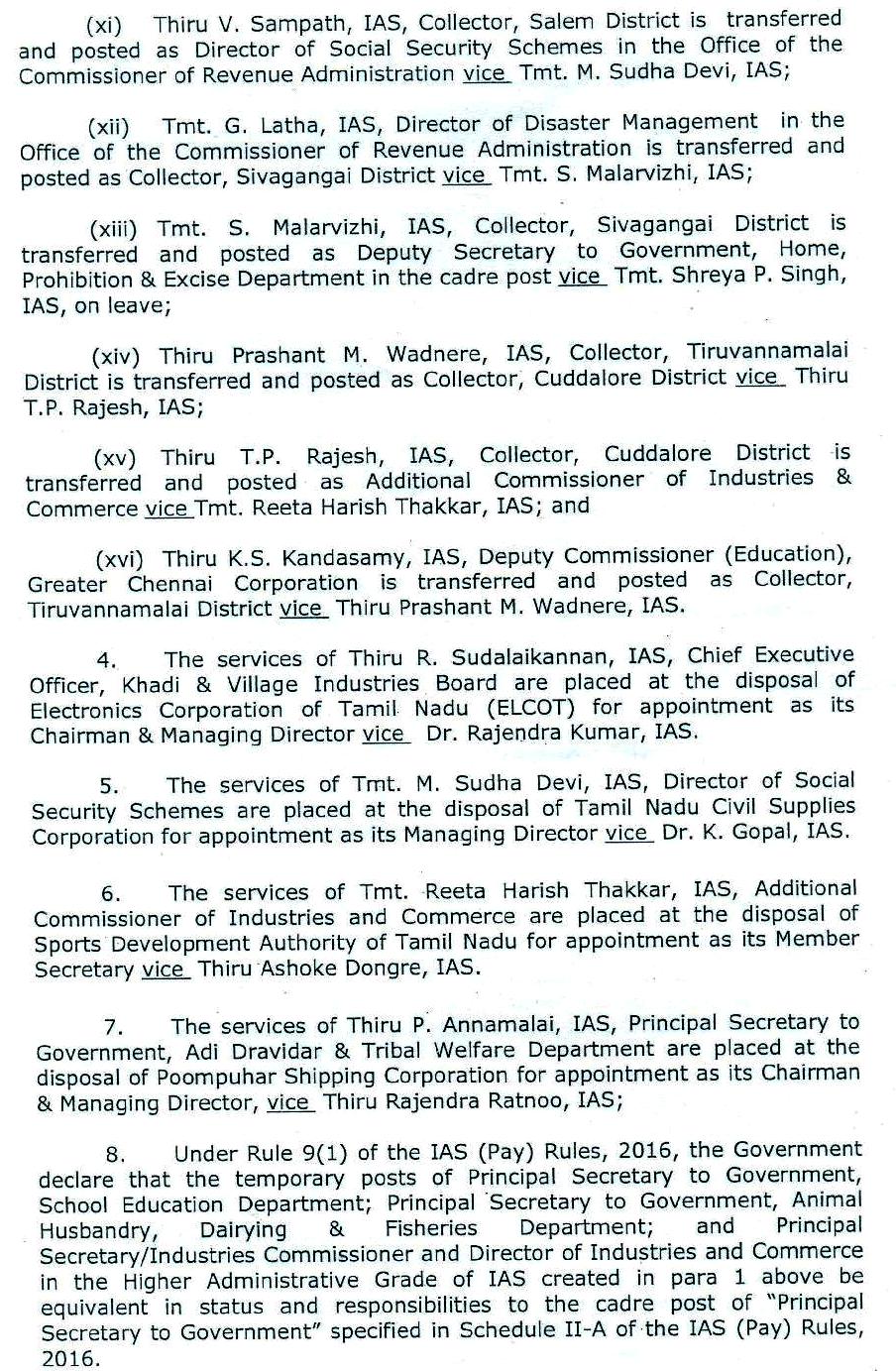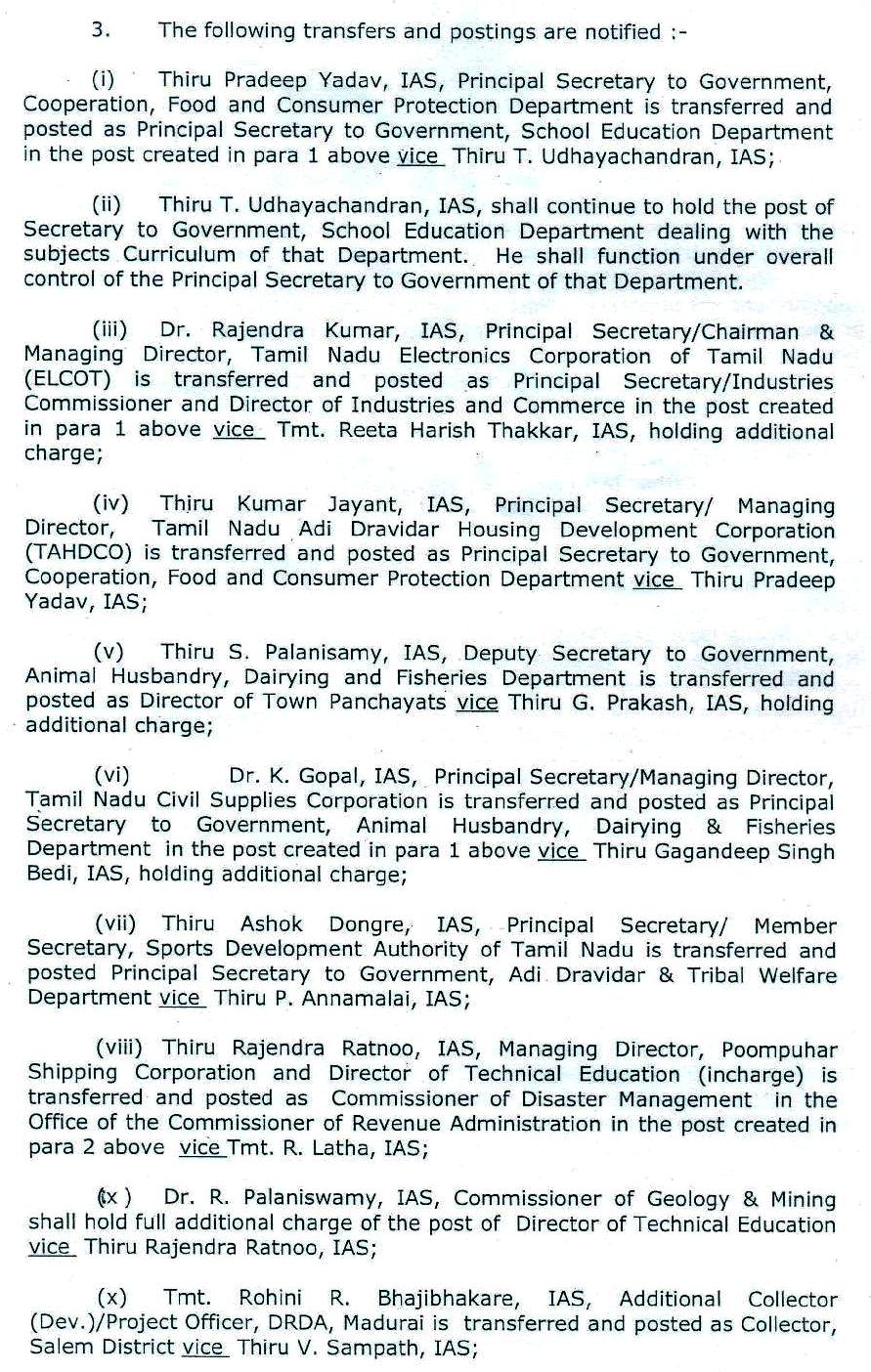 தமிழகத்தில் ஐ.ஏ.எஸ். அதிகாரிகளை அதிரடி பணியிடமாற்றம் செய்து தமிழக அரசு உத்தரவிட்டுள்ளது.