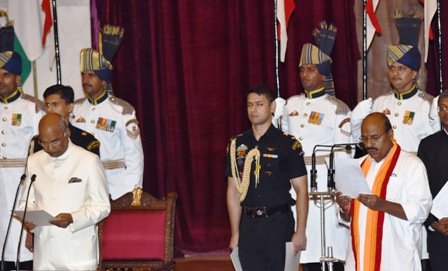 இந்திய குடியரசு தலைவர் மாளிகையில் இன்று நடைபெற்ற விழாவில், குடியரசு தலைவர் ராம்நாத் கோவிந்த் அவர்களுக்கு பதவி பிரமாணம் செய்து வைத்தார்.