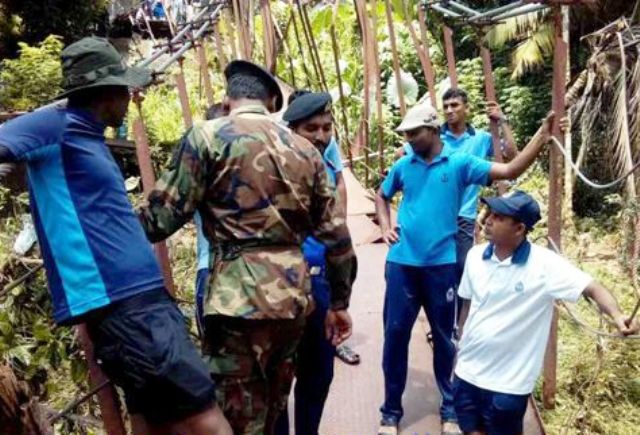 இதை அறிந்த இலங்கை கடற்படை தலைமையகம், இலங்கை கடற்படையினரை சம்பவ இடத்திற்கு மீட்பு மற்றும் புனரமைப்பு பணிக்கு அனுப்பி வைத்தனர். குடியிருப்பாளர்களின் உதவியுடன், கடற்படையின் அவசரநிலைப் பொறுப்புக் குழு சேதமடைந்த பாலத்தை இன்று (11.09.2017) சீரமைத்தனர்.