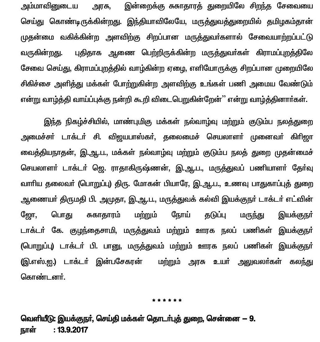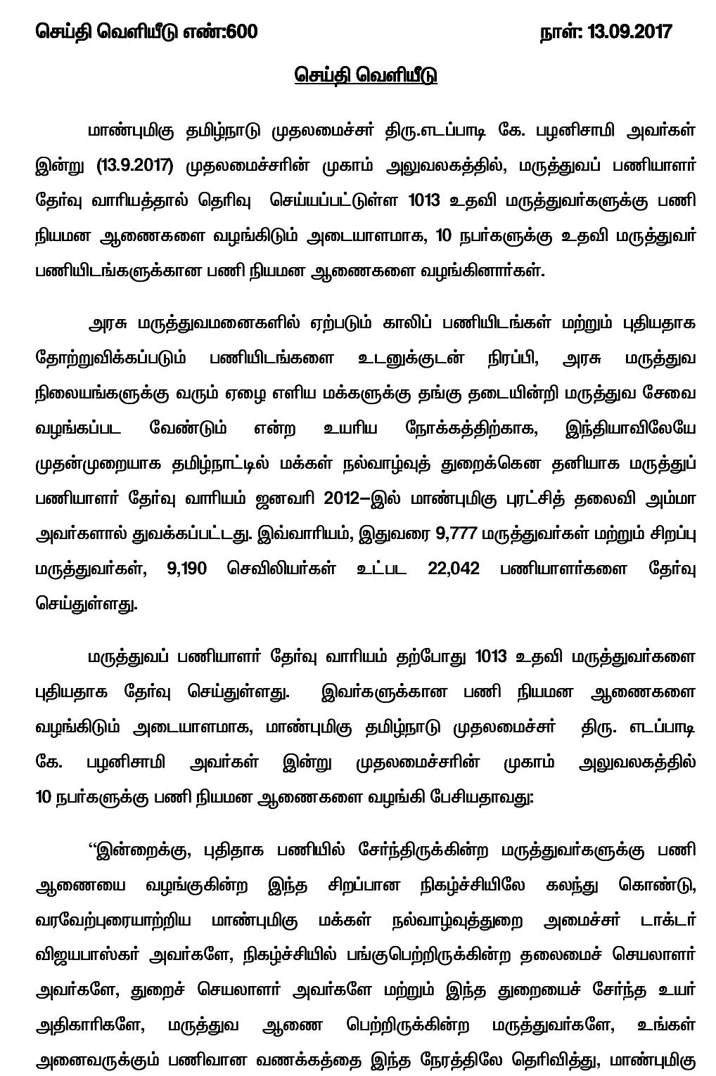 Home|News|உதவி மருத்துவர்களுக்கு பணி நியமன ஆணை:தமிழ்நாடு முதலமைச்சர் கே.பழனிசாமி வழங்கினார். –கே.பி.சுகுமார்.