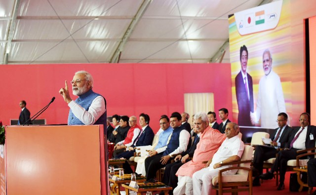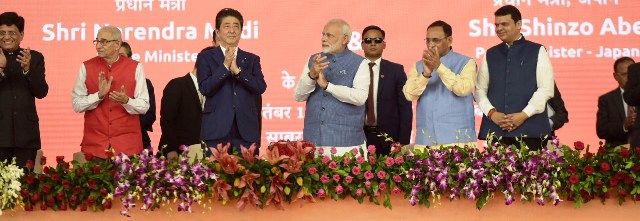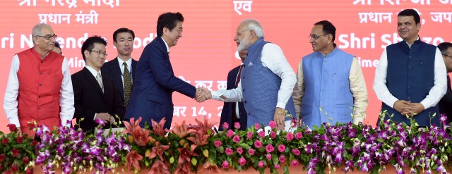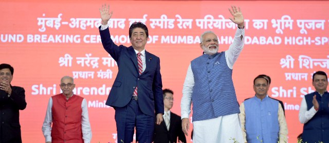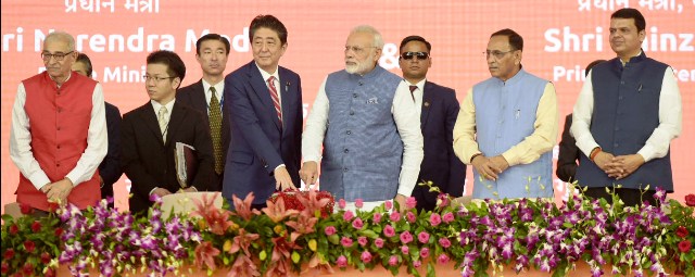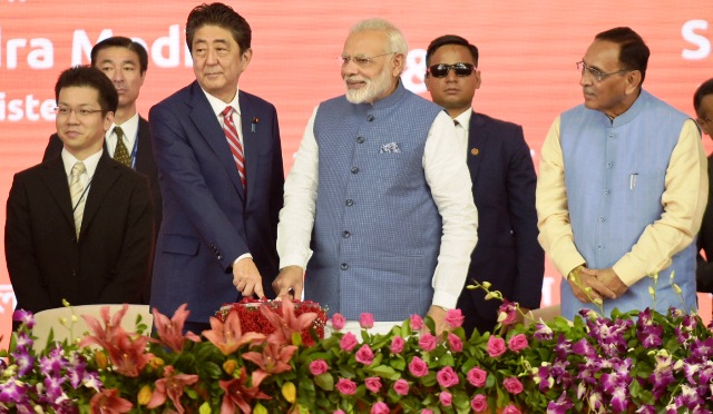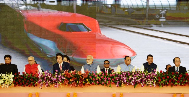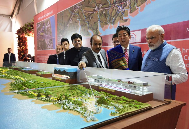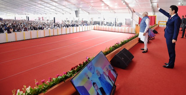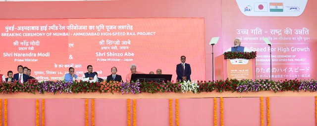 ஆமதாபாத் – மும்பை இடையே, அதிவேக, புல்லட் ரயில் இயக்குவதற்கான அடிக்கல் நாட்டும் விழா, இந்திய பிரதமர் நரேந்திர மோதி, ஜப்பான் பிரதமர் ஷின்சோ அபே ஆகியோர் தலைமையில் இன்று (14.09.2017) நடைப்பெற்றது.