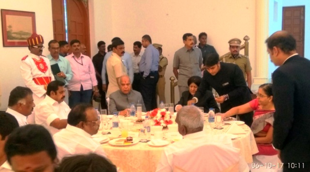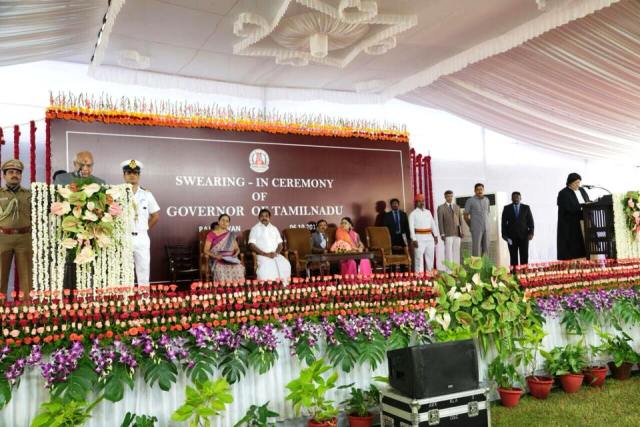 தமிழ்நாடு புதிய ஆளுநராக பன்வாரிலால் புரோஹித் இன்று (06.10.2017) பதவி ஏற்றுக் கொண்டார். சென்னை கிண்டி ராஜ்பவன் ஆளுநர் மாளிகையில் பதவி ஏற்பு விழா நடைப்பெற்றது.