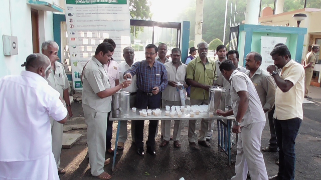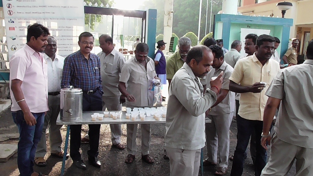 திருச்சி, திருவெறும்பூர் பெல் (BHEL) நிறுவன ஊழியர்கள் மற்றும் அவரது குடும்பத்தினர் உள்பட 15 ஆயிரம் பேருக்கு தொ.மு.ச சார்பில் டெங்கு காய்ச்சலில் இருந்து காப்பாற்றி கொள்ளும் வகையில் நில வேம்பு கசாயம் வழங்கப்பட்டு வருகிறது.