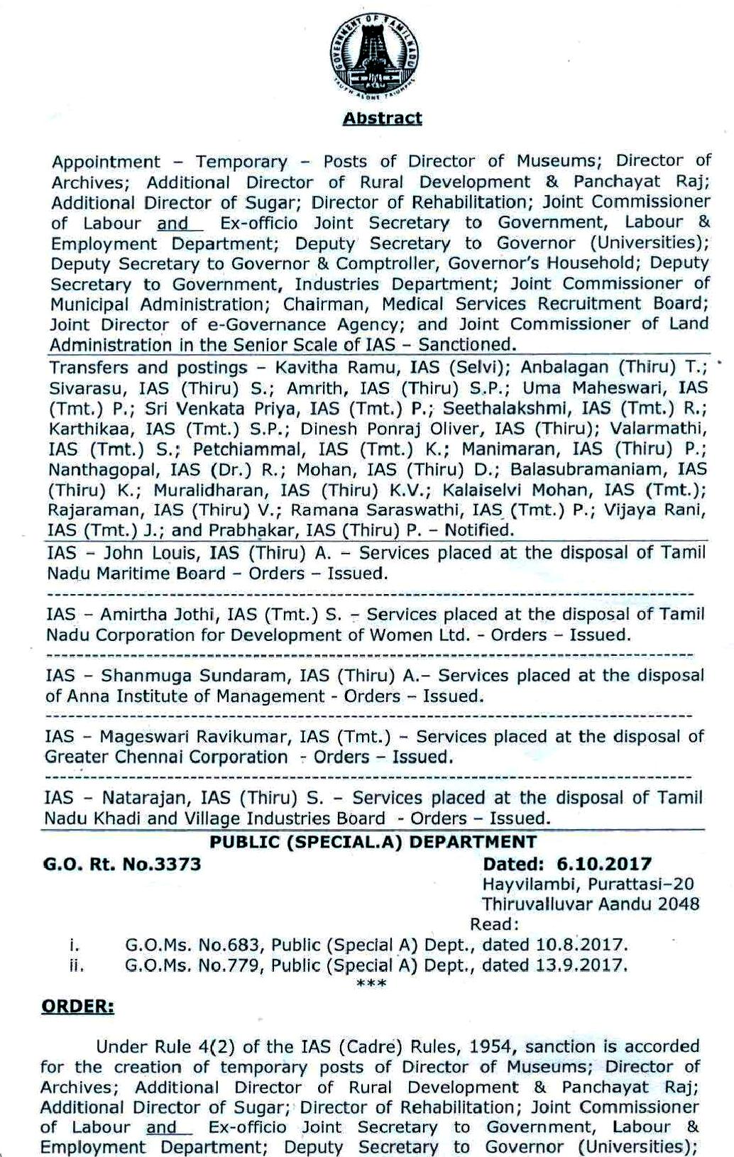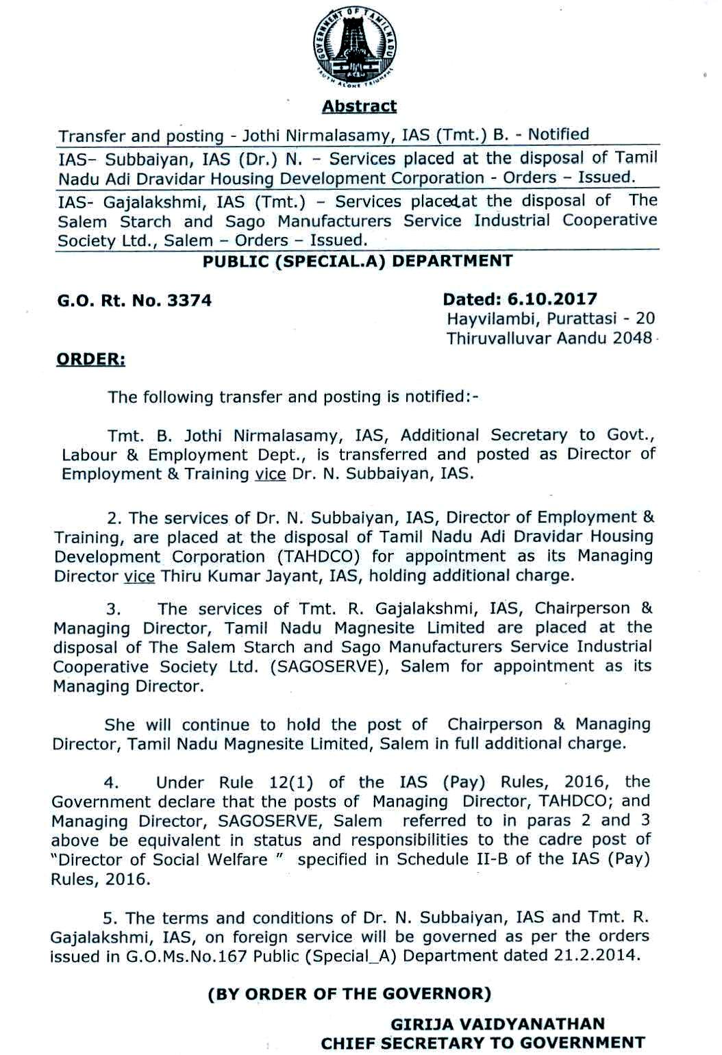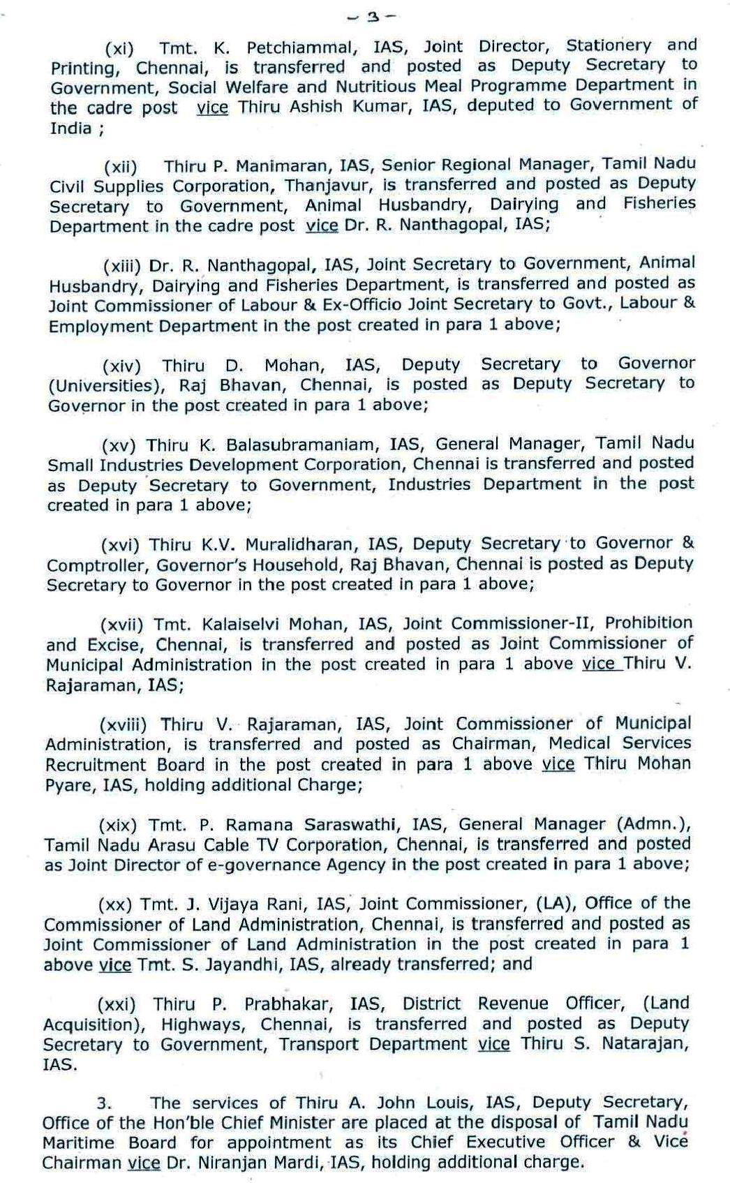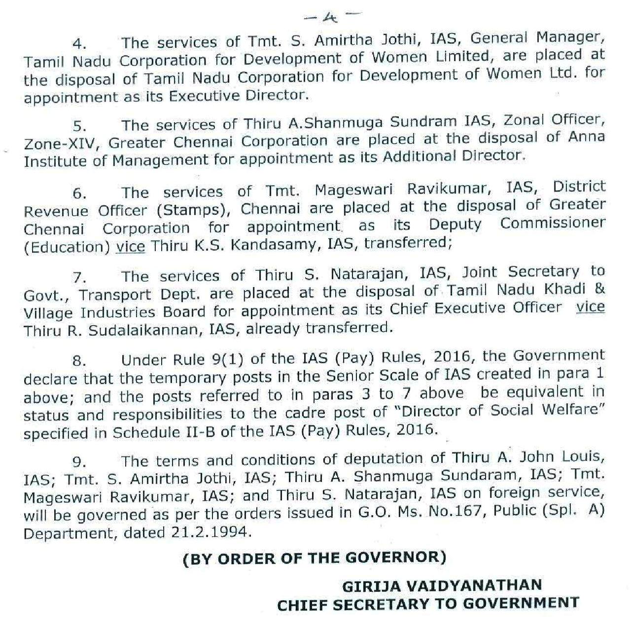 Home|News|தமிழகத்தில் ஐ.ஏ.எஸ். அதிகாரிகள் மாற்றம்!-உத்தரவின் உண்மை நகல். தமிழக அரசின் தலைமை செயலாளர் கிரிஜா வைத்தியநாதன். தமிழகத்தில் 24 ஐ.ஏ.எஸ். அதிகாரிகள் இடமாற்றம் செய்யப்பட்டுள்ளனர். இதற்கான உத்தரவை தமிழக அரசின் தலைமை செயலாளர் கிரிஜா வைத்தியநாதன் பிறப்பித்துள்ளார். -டாக்டர்.துரைபெஞ்சமின். ullatchithagaval@gmail.com