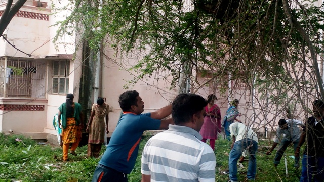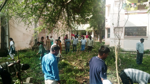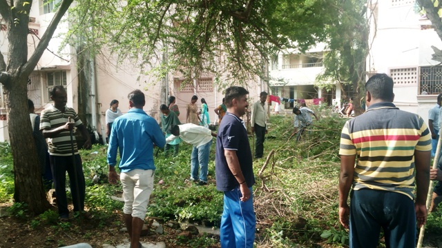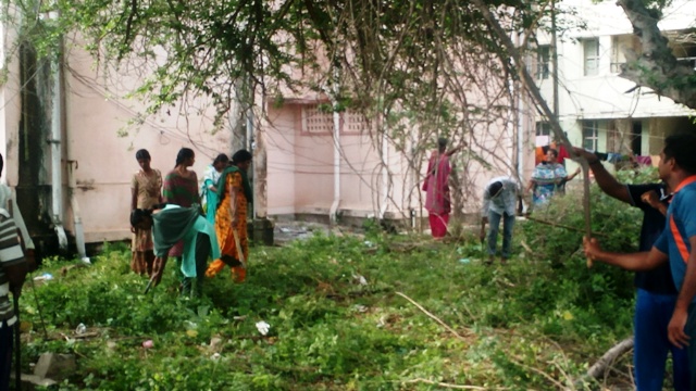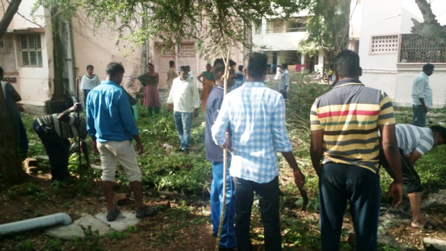 திருச்சிராப்பள்ளி மாவட்டம், திருவெறும்பூரில் உள்ள காவலர் குடியிருப்பு பகுதிகளில் செடி, கொடி முளைத்து, புதர் மண்டி கிடந்தது. இதனால் கொசுக்களின் ஆதிக்கம் அதிகரித்து வந்தது. இப்போது எங்கு பார்த்தாலும் டெங்கு காச்சல் பயமுறுத்தி வருவதால், இதனால் சுதாரித்து கொண்ட காவலர் குடியிருப்புவாசிகள், அப்பகுதிகளில் இருந்த செடி, கொடி மற்றும் புதர்களை அழித்து துப்புரவு பணிகளை மேற்கொண்டனர்.