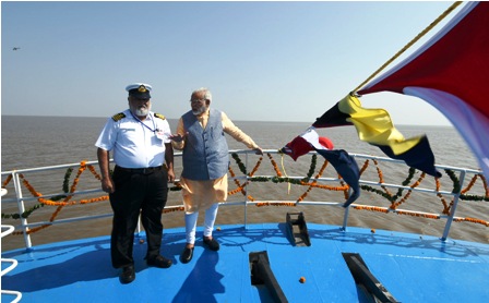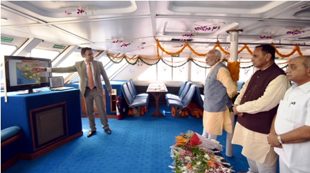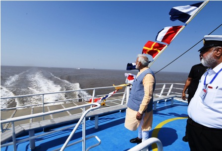 பல்வேறு நிகழ்ச்சிகளில் பங்கேற்பதற்காக குஜராத் வந்துள்ள பிரதமர் நரேந்திர மோதி, காம்பே வளைகுடாவில் பரூச்சின் தாகேஜ் – கோதா இடையில் ரூ.615 கோடி மதிப்பிலான படகு போக்குவரத்தை இன்று துவக்கி வைத்தார்.