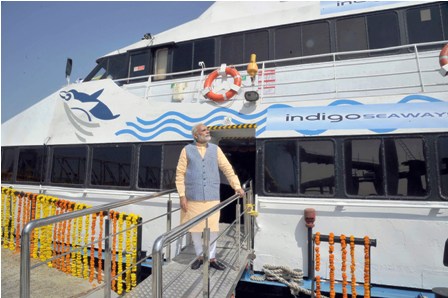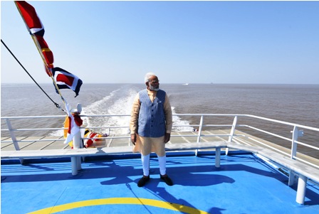 குஜராத்தில் ரூ.615 கோடி மதிப்பிலான படகு போக்குவரத்தை பிரதமர் நரேந்திர மோதி துவக்கி வைத்தார்.