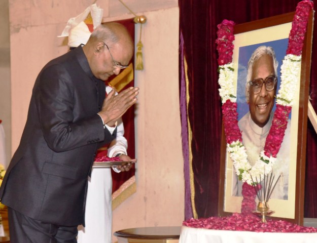 முன்னாள் குடியரசுத் தலைவர் கே.ஆர். நாராயணன் பிறந்த நாளை முன்னிட்டு, அவரது உருவப்படத்திற்கு, குடியரசுத் தலைவர் ராம் நாத் கோவிந்த் இன்று புது தில்லியில் உள்ள ராஷ்டிரபதி பவனில் அஞ்சலி செலுத்தினார்.