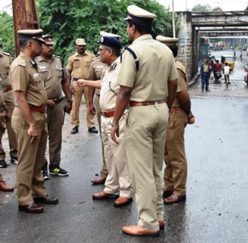 வெள்ளம் சூழ்ந்த பகுதிகளை சென்னை காவல் ஆணையாளர் விசுவநாதன் நேரில் பார்வையிட்டு, காவல் அதிகாரிகளுடன் கலந்தாய்வு செய்து, சாலைகளில் தேங்கியுள்ள மழை நீரை அப்புறப்படுத்தி, போக்குவரத்து சீராக செல்வதற்கு தேவையான ஏற்பாட்டை செய்ய காவல் அதிகாரிகளுக்கு உத்தரவிட்டு வருகிறார்.