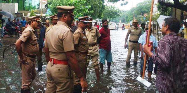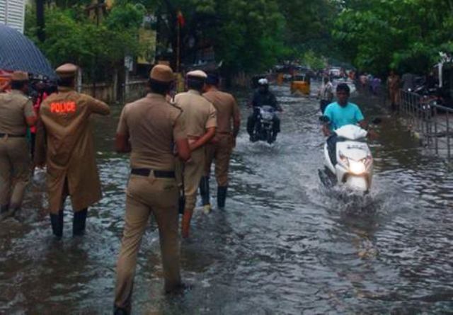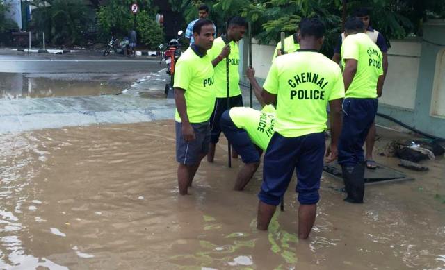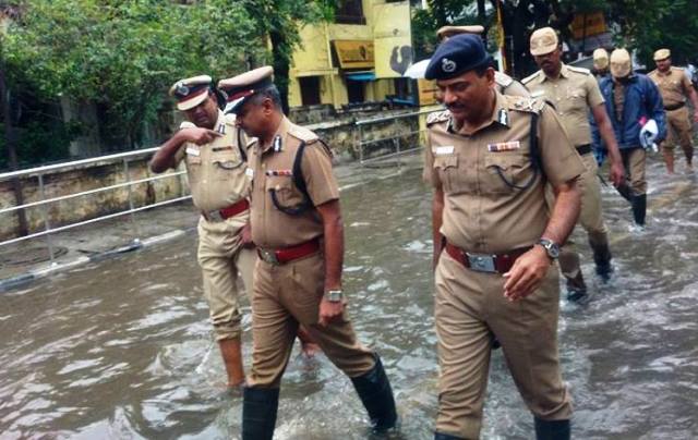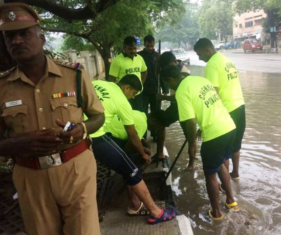 சென்னையில் மழையினால் வெள்ளம் சூழ்ந்த பகுதிகளில் காவல் துறையினர் மீட்பு மற்றும் நிவாரணப் பணிகளில் தீவிரமாக ஈடுப்பட்டு வருகின்றனர்.