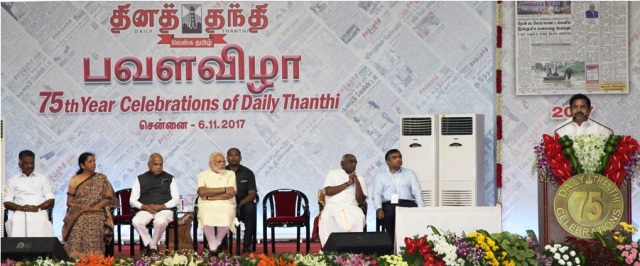 எளிய முறையில் செய்திகளை புரியும் வண்ணம் கொடுப்பது தினத்தந்தியின் தனித்துவம். அஞ்சல் துறையால் நிர்வகிக்கப்பட்ட தந்தி கொடுக்கும் முறை காணாமல் போனது, ஆனால் 75 ஆண்டுகளை கடந்து செய்திகளை தந்தியாக தினத்தந்தி கொடுத்து வருகிறது. தமிழகம், பிறமாநிலங்கள், வெளிநாடு என 17 பதிப்புகளில் தினத்தந்தி வெளிவருவது மாபெரும் சாதனை. பெங்களூர், மும்பை என வெளி நகரங்களிலும் வெளியாகி சிறந்து விளங்குகிறது தினத்தந்தி. தினத்தந்தியின் வளர்ச்சிக்கு எனது வாழ்த்துக்களை தெரிவித்துக் கொள்கிறேன். 24 மணி நேரமும் செய்தி தொலைக்காட்சிகள் மக்களுக்கு கிடைத்து வருகிறது ஆனாலும் காலையில் தேநீருடன் பத்திரிகை படிப்பதை மக்கள் நிறுத்தவில்லை.