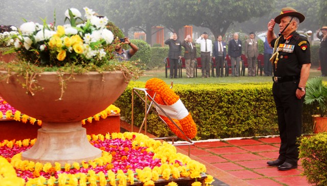 தியாகிகளின் யுத்த நினைவு இடத்தில், இந்திய இராணுவத் தளபதி பிபின் ராவத் மலர் வளையம் வைத்து வீரவணக்கம் செலுத்தினார்.