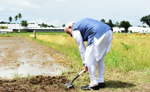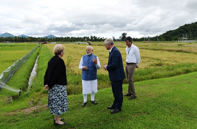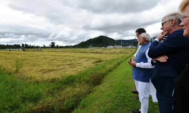 மேலும், அங்குள்ள விளைநிலங்களையும், நெல் வயல்களையும், இந்திய பிரதமர் நரேந்திர மோதி சுற்றிப் பார்த்தார். அங்கு பணிபுரியும் ஊழியர்களுடன் குழுவாக படம் எடுத்துக்கொண்டார்.