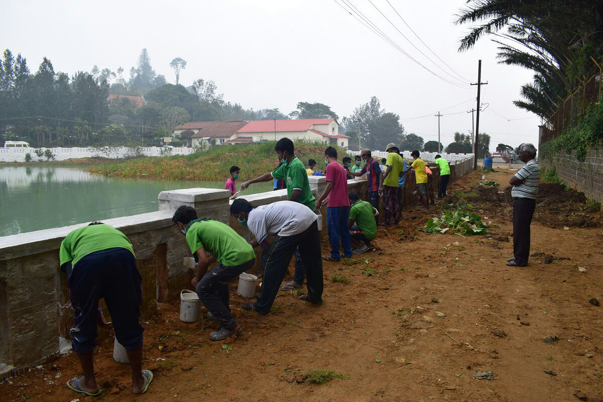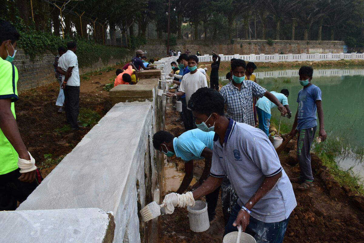 இந்நிலையில், இன்று ஏற்காடு இளைஞர்கள், ஈச்சங்காடு சலேசியன் கல்லூரி அருட்சகோதரர்கள் மற்றும் பொதுமக்கள் இணைந்து ஏரிக்கரை முழுவதும் உள்ள தடுப்பு சுவருக்கு வர்ணம் பூசும் பணியில் ஈடுப்பட்டனர்.