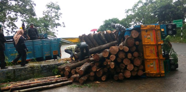 இவ்வாறு அளவிற்கு அதிகமாக மரக்கட்டைகளை ஏற்றி வரும் லாரிகளை வனத்துறையினர் கண்டுகொள்ளாமல் அனுப்பி விடுகின்றனர். இதனால், மலைப்பாதையில் மரலோடு லாரிகள் கவிழும் நிகழ்வு அடிக்கடி ஏற்படுகின்றன.