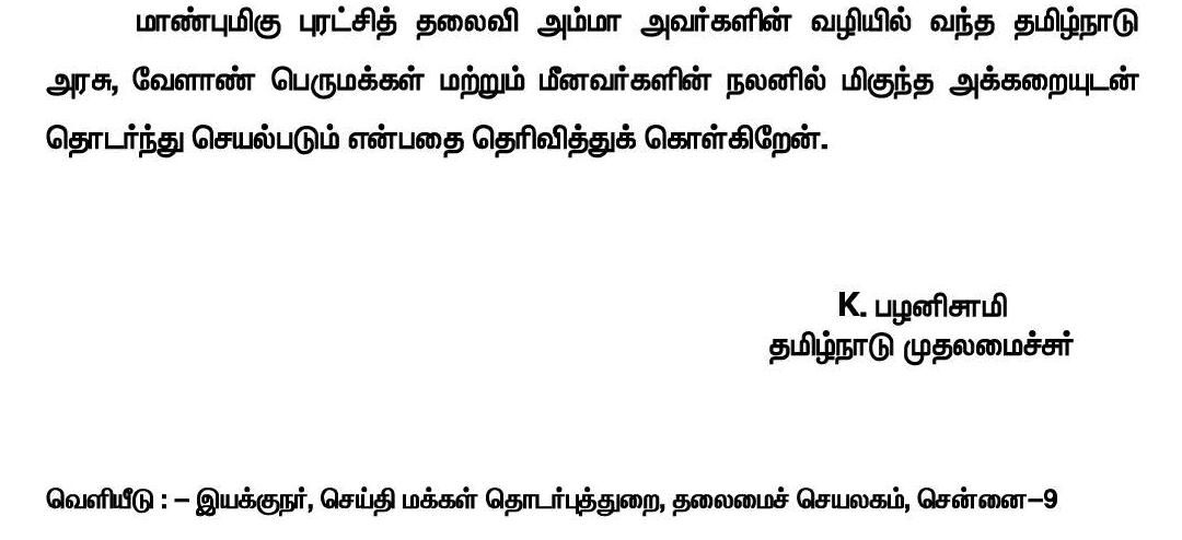 புயலால் பாதிக்கப்பட்ட வாழை விவசாயிகளுக்கு ஹெக்டேர் ஒன்றுக்கு ரூ.48,500/- முதல் ரூ.63,500/-வரை வழங்கப்படும்: தமிழ்நாடு முதலமைச்சர் கே.பழனிசாமி அறிக்கை!