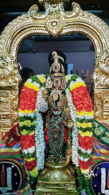 ஸ்ரீரங்கம் அருள்மிகு அரங்கநாத சுவாமி திருக்கோவில் பகல் பத்து நான்காம் திருநாளில் நம்பெருமாள் வைகுண்ட ஏகாதசி பெருவிழாவின் பகல் பத்து உற்சவத்தின் 4-ம் நாள் இன்று (22.12.2017) ஸ்ரீரங்கப்பிரபு ஸ்ரீநம்பெருமாள், சவுரிக்கொண்டை, வைர அபயஹஸ்தம், தங்ககிளி, முத்து மாலை, புஜ கீர்த்தி, பவளமாலை, முத்துமாலை, கஸ்தூரி திலகம் உள்ளிட்ட திருவாபரணங்கள் சூடி புறப்பாடாகி பக்தர்களுக்கு அருள்பாலித்தார்.