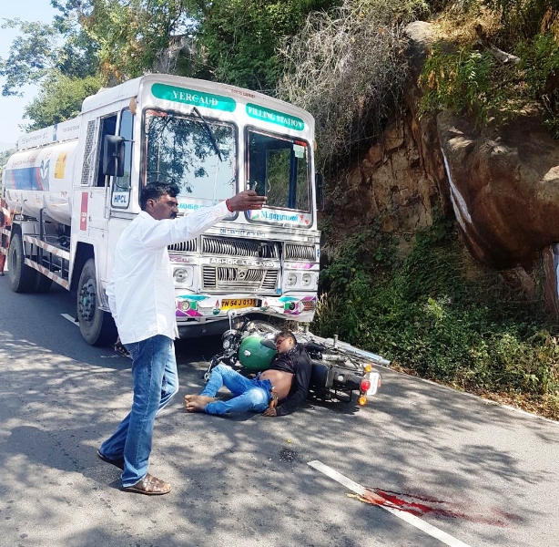 ஏற்காடு மலைப்பாதையில் விபத்து!-பைக் – டேங்கர் லாரி நேருக்கு நேர் மோதிக்கொண்டதில் இளைஞர் பலி.