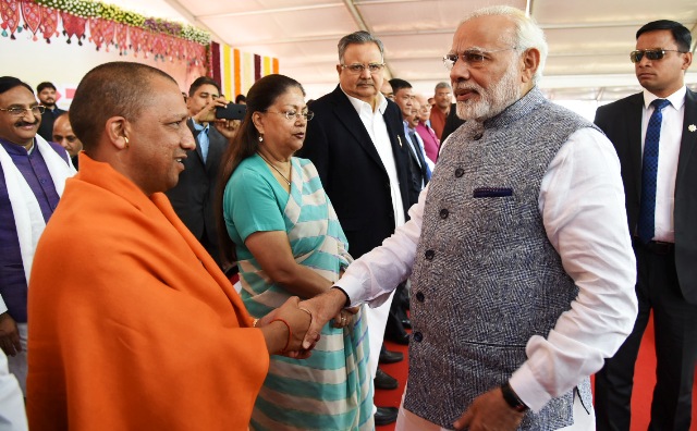 இந்த பதவியேற்பு விழாவில் பா.ஜ.க. தேசிய தலைவர் அமித்ஷா, உத்தரப்பிரதேச முதல்வர் யோகி ஆதித்யநாத், ராஜஸ்தான் முதல்வர் வசுந்தரா ராஜே சிந்தியா மற்றும் சத்தீஸ்கர் மாநில முதல்வர் ரமண் சிங், பீகார் முதல்வர் நிதீஷ் குமார், பா.ஜ.க. ஆளும் மாநிலங்களின் முதல்வர்கள், கூட்டணி கட்சி தலைவர்கள் கலந்து கொண்டனர்.