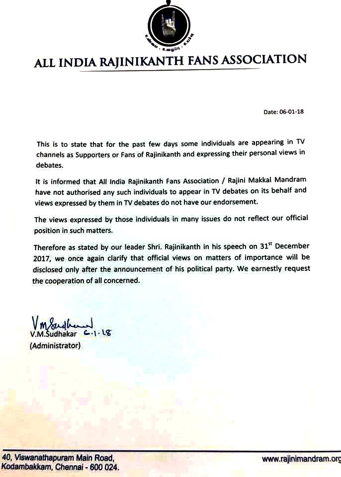 Home|News|தமிழ்நாடு|நடிகர் ரஜினிகாந்த் சார்பில் அதிகாரப்பூர்வ ஊடக செய்தித் தொடர்பாளர்கள் யாரும் இல்லை!- தலைமை நிர்வாகி அறிவிப்பு. -டாக்டர்.துரைபெஞ்சமின். ullatchithagaval@gmail.com Leave a Reply Cancel reply Save my name, email, and website in this browser for the next time I comment.